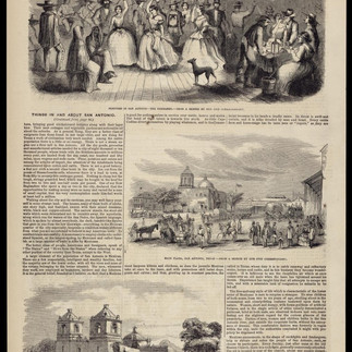 The population of San Antonio may be divided into several as Rancheros, or herdsmen, a rude uncultivated race of beings, who pass the greater part of their lives in the saddle, herding cattle and horses, and in hunting deer, buffalo, or mustangs. Unused to comtort, and regardless alike of ease and danger, they have a hardy, brigand sun-burnt appearance, especially when seen with a slouched hat, leather hunting shirt, leggings and Indian moccasins, armed with a large knife, musket, or rifle, and sometimes pistols. To this class belong the peons or labourers, who in Mexico are little better than slaves. The second is a link between the Mexican Indian and Spaniard, are somewhat civilized, superstitious and have less energy than the Ranchero. They reside in the city and its suburbs, cultivating their beautifully situated labors (177 acres] or farms on either side of the gently running river, appearing to be perfectly inde pendent and contented. Their usual dress is a broad brimmed hat of a reddish colour, or white, the band ornamented with silver ornaments or coloured beads, calico shirt, wide trousers, with a fancy coloured sash or girdle about the waist and the jacket thrown carelessly over the shoulder. Early in the morning they go to mass, work a little on the labores, dine, sleep the siesta, and in the evening amuse themselves with tinkling the guitar to their dulcines, gaming, or dancing.The females of this class are kindly and agreeable; they dress plain and tastefully and know how to develope the elegant proportion of their persons, particularly when tripping to matins, or vespers, their hands and faces coquettishly covered with the black mantilla or silk shawl-these are the votaries of the Fandango for which San Antonio is so justly distinguished. Nightly, while yet fresh and buoyant with the exhilerating effects of the siesta or bath, they flock to the scenes of mirth and music, conducted with decorum and without the restraints of announcements, bows, and introductions.
